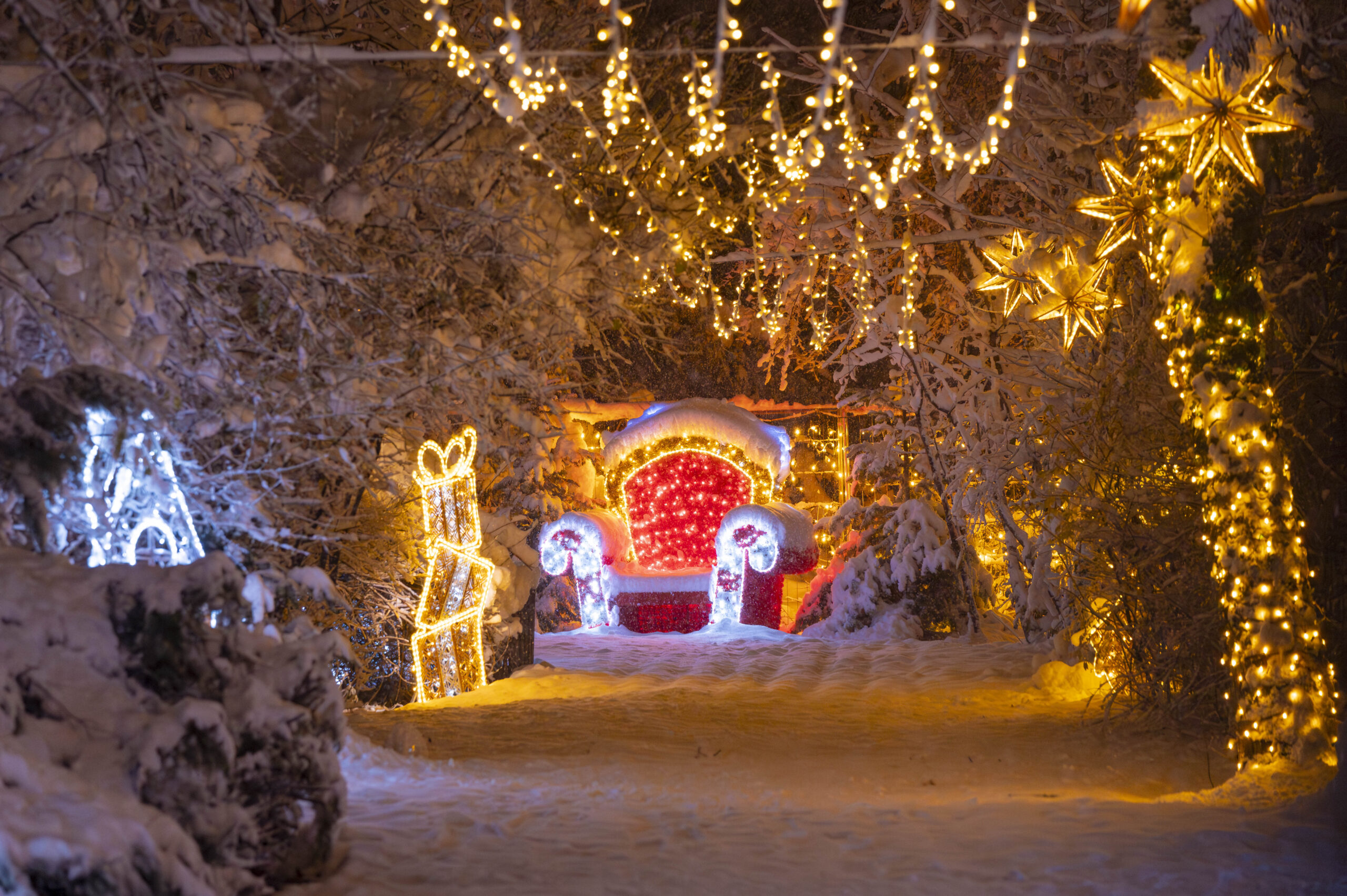 Koe joulun taika perheesi kanssa Marchtrenkissä, Itävallassa! Lumisen metsän keskellä voit kävellä ulkona ja ihailla 23 hohtavan hahmon kosketusta 3D-muodossa. Neljä metriä korkea nallekarhumme ilahtuu levätessään, vaikuttava joulukuusi suojaa sinua, upeat porovaunut vetävät sinut ilmaan ja voit istua joulupukin majesteettisella valtaistuimella. Todellinen matka alkuun majesteettisessa ja häikäisevässä puistossa.