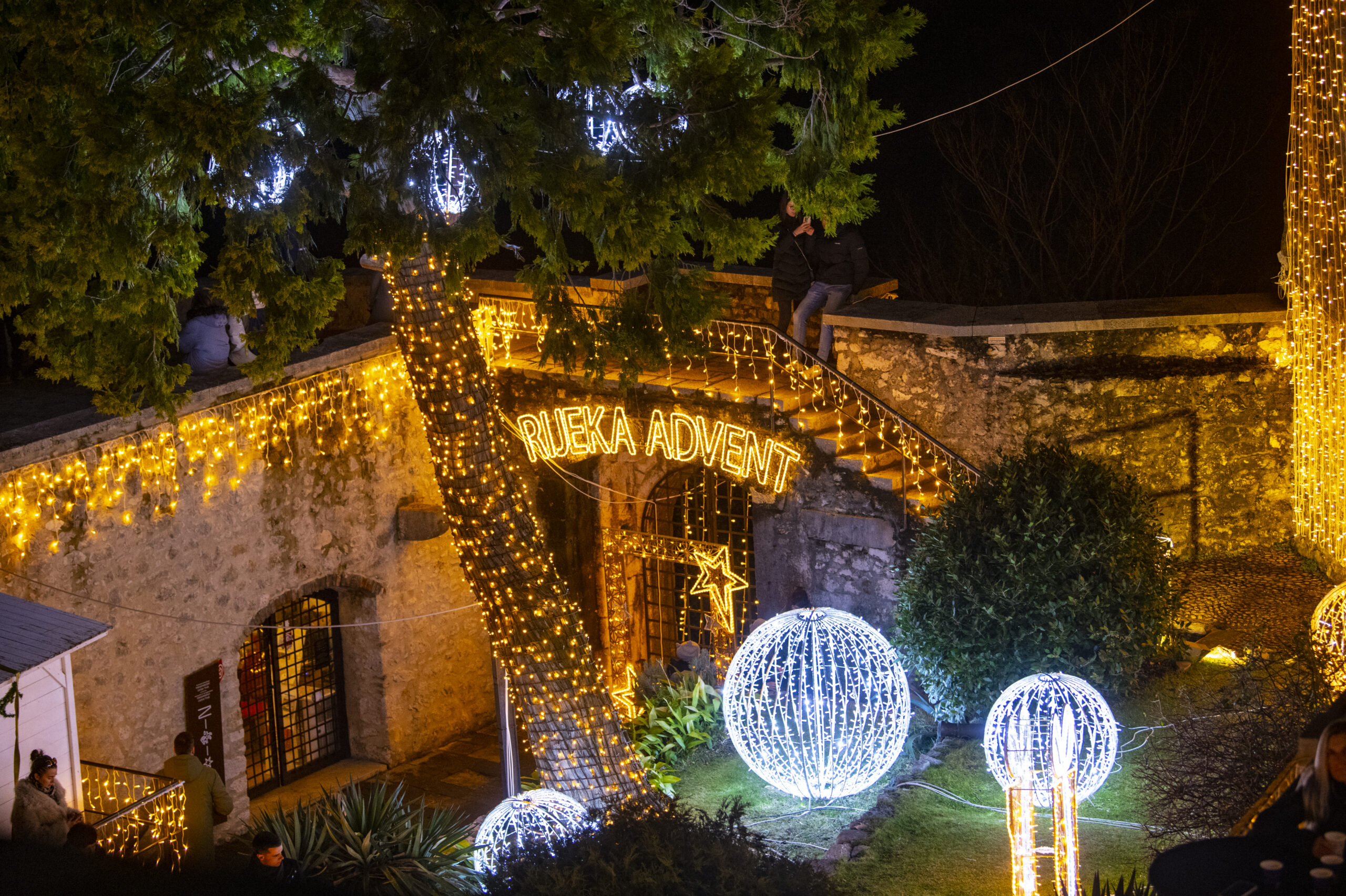 Kultaisilla ja valkoisilla kuvioilla koristellut valokaaret tarjosivat ikimuistoisen sisäänkäynnin tähän historialliseen kohteeseen, ja taiteelliset installaatiot korostivat linnan jokaista yksityiskohtaa. Tämä aloite heijastaa Rijekan sitoutumista perinteiden ja innovaatioiden yhdistämiseen, kulttuuriperintönsä esittelyyn ja samalla sekä perheiden että turistien houkuttelemiseen.