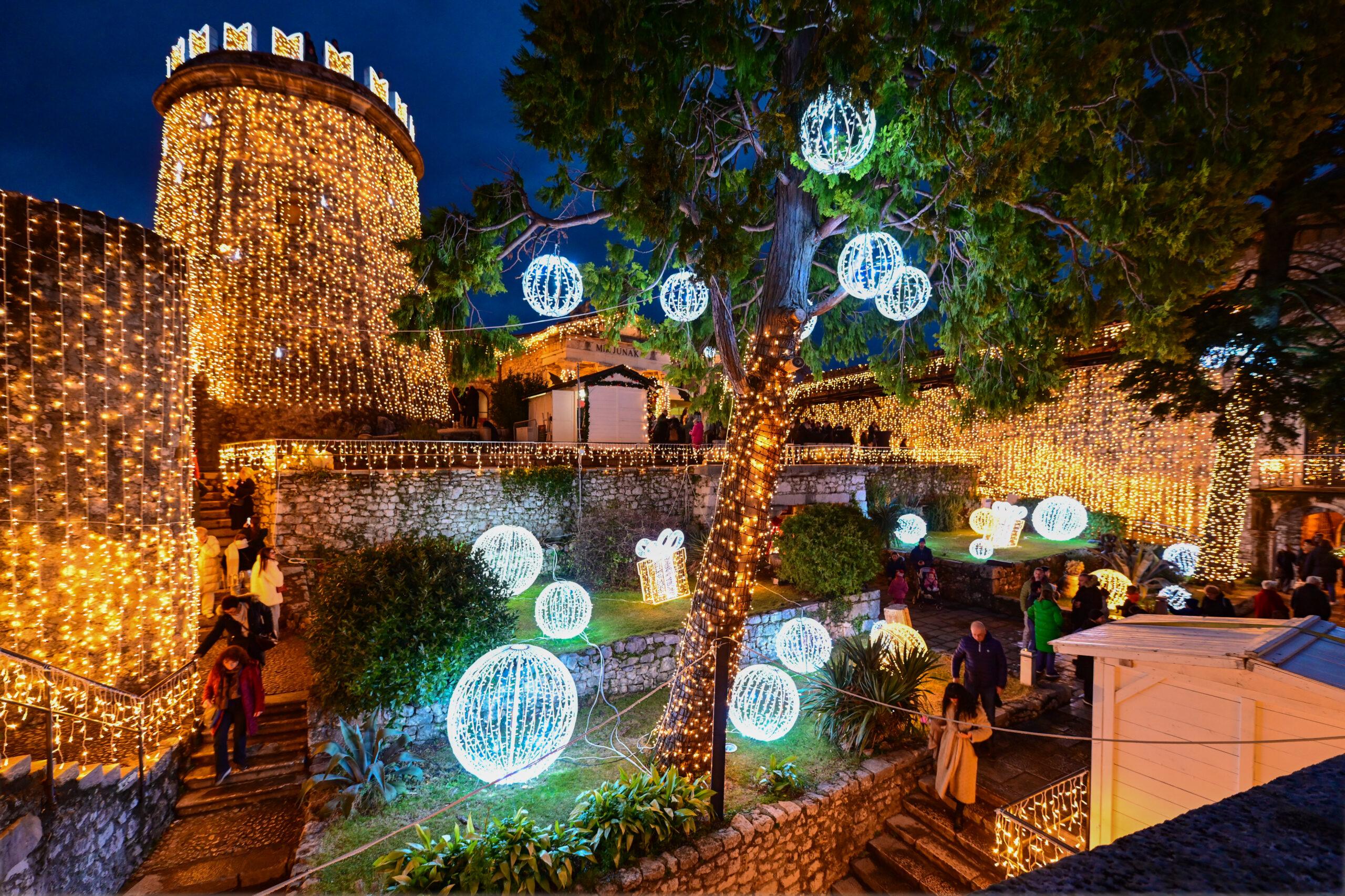 Kultaisilla ja valkoisilla kuvioilla koristellut valokaaret tarjosivat ikimuistoisen sisäänkäynnin tähän historialliseen kohteeseen, ja taiteelliset installaatiot korostivat linnan jokaista yksityiskohtaa. Tämä aloite heijastaa Rijekan sitoutumista perinteiden ja innovaatioiden yhdistämiseen, kulttuuriperintönsä esittelyyn ja samalla sekä perheiden että turistien houkuttelemiseen.